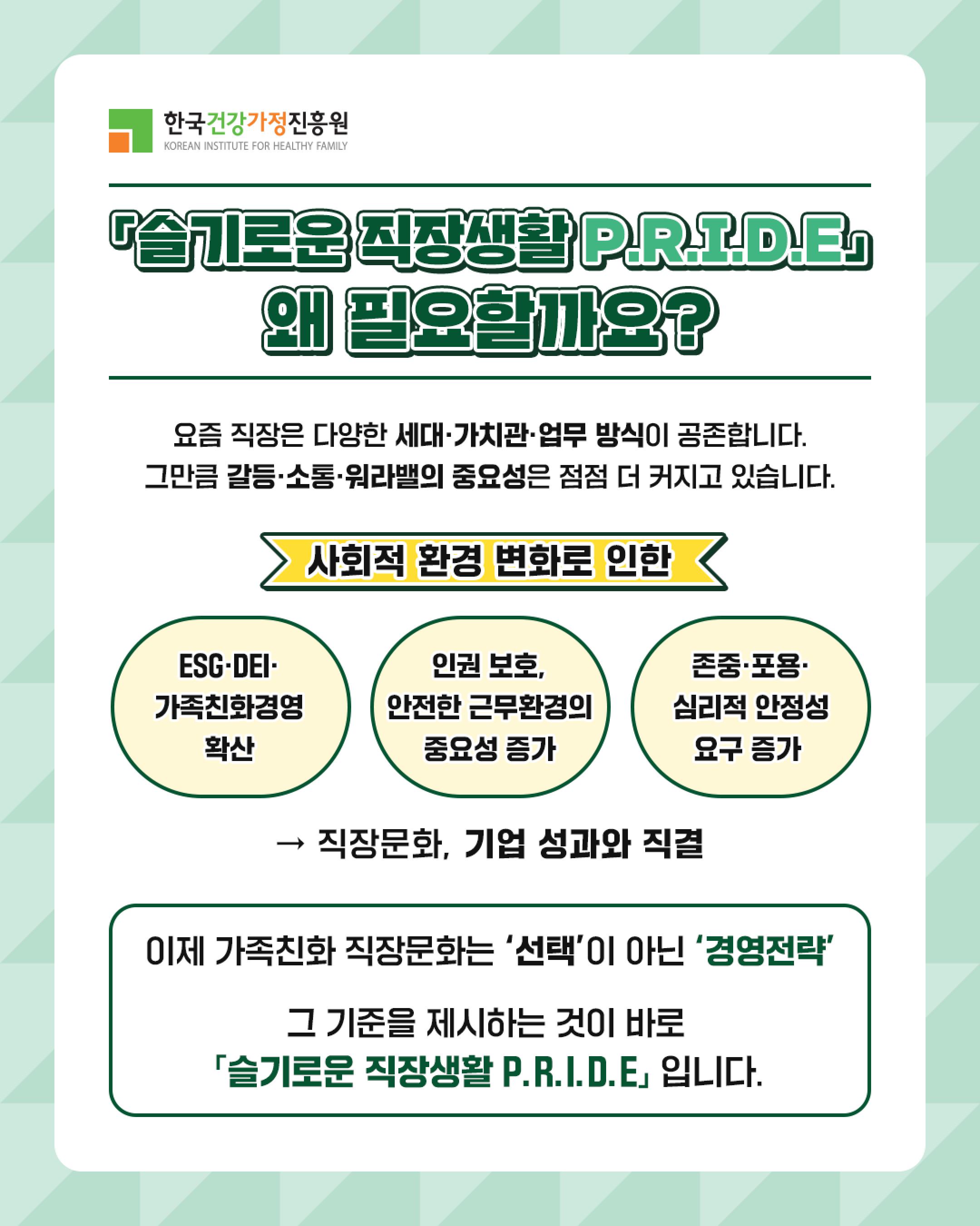 1. [가족친화기업 근로자를 위한 슬기로운 직장생활 P.R.I.D.E]